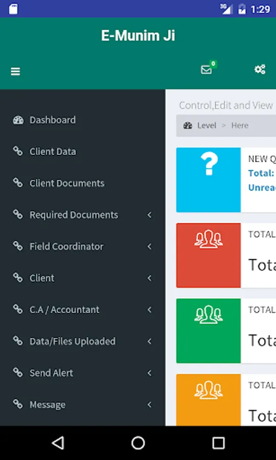 This app is for Field Co-Ordinator who will manage client data such as registration, document upload, updation etc.