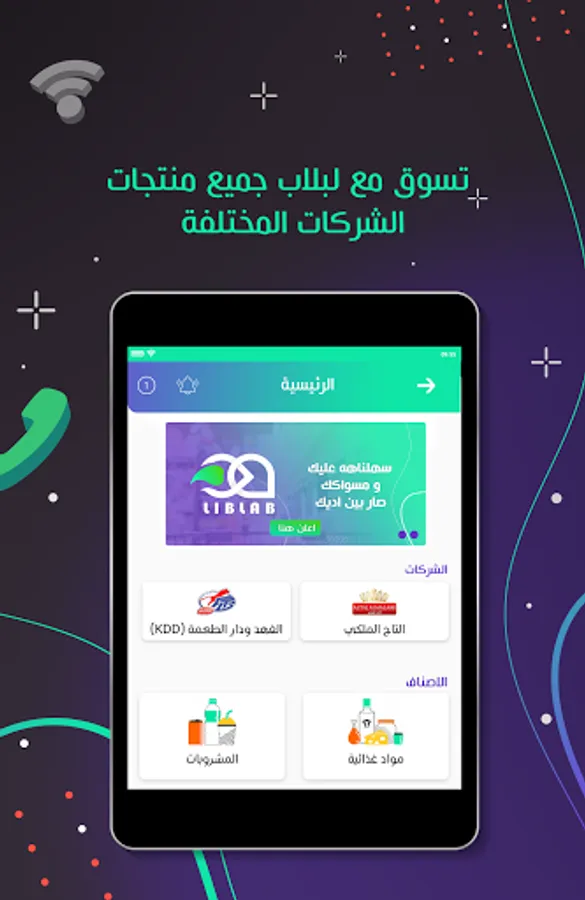 LIBLAB application is a commercial platform between suppliers and market owners, and the application is a direct link between the two parties in order to facilitate the ordering process by the markets directly for companies. The application also contains all the offers according to the policy of each company along with other advertising services for companies within the application such as notifications and notice board.