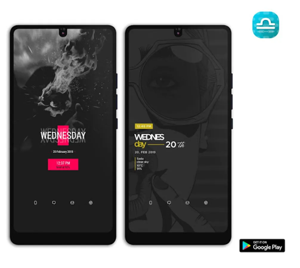 It contains minimalist, modern designs, with colors to highlight some details, taking care of the choice of all the elements and information contained in each one. It has a comprehensive selection of fonts that enhance the screen of your smartphone.