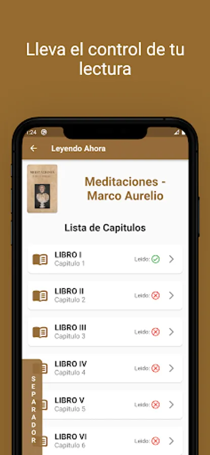 Our app allows you to keep track of the chapters you've already read. Simply mark each chapter as read with a button and continue on your journey of self-knowledge and reflection.