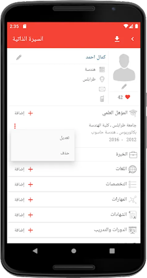 Create a CV through the Android application and the ability to print the CV with a better design.