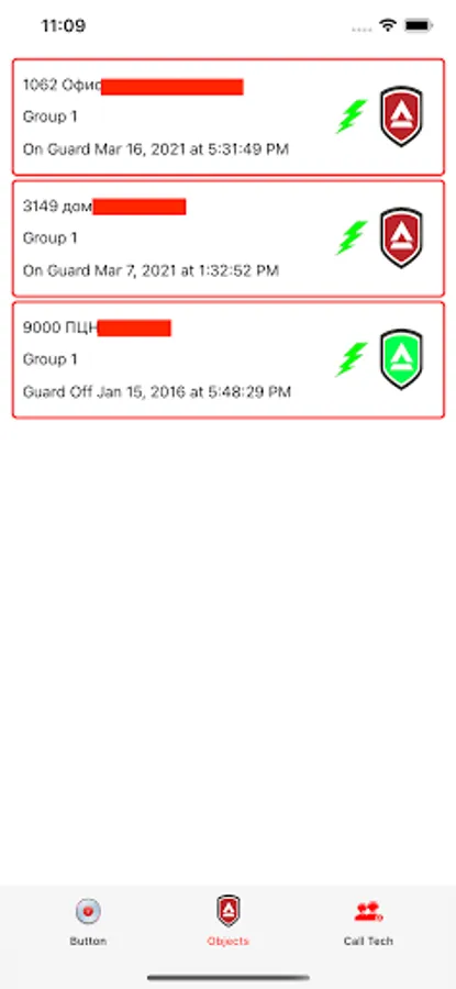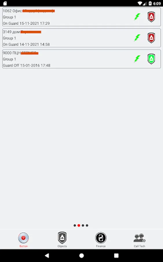 • We have added the “Objects” tab, displaying the security status of the objects and the state of the main power supply of 220V at the facility. If you are listed as responsible for the object protected by us, you can register and gain access to information.