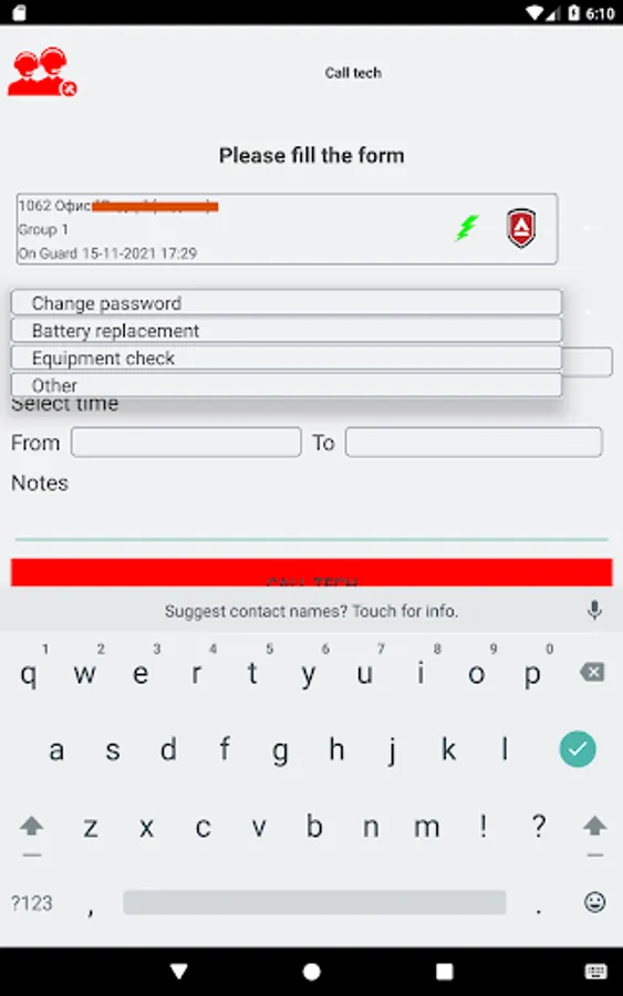 • Added the "Call a technician" tab, now you can create a request for repair or maintenance. In the application form, you can select: object, reason for the call, date, time. You can also add comments.