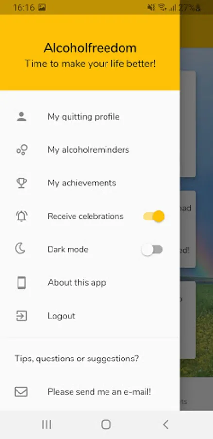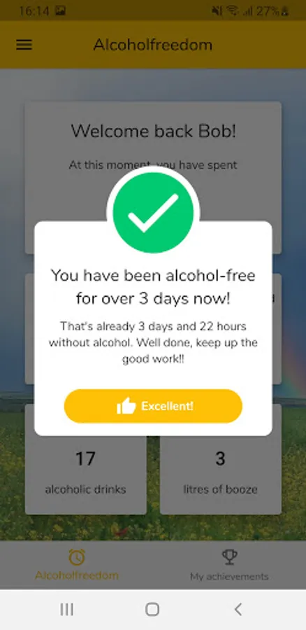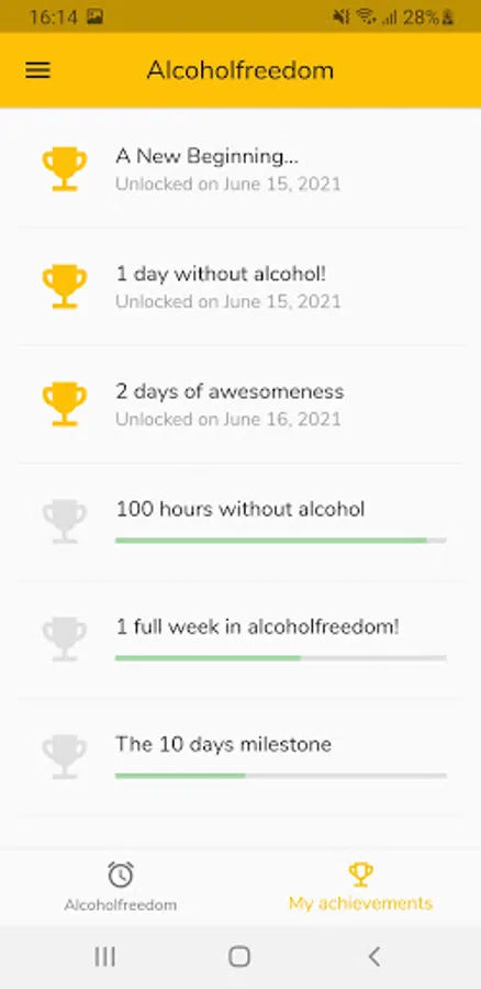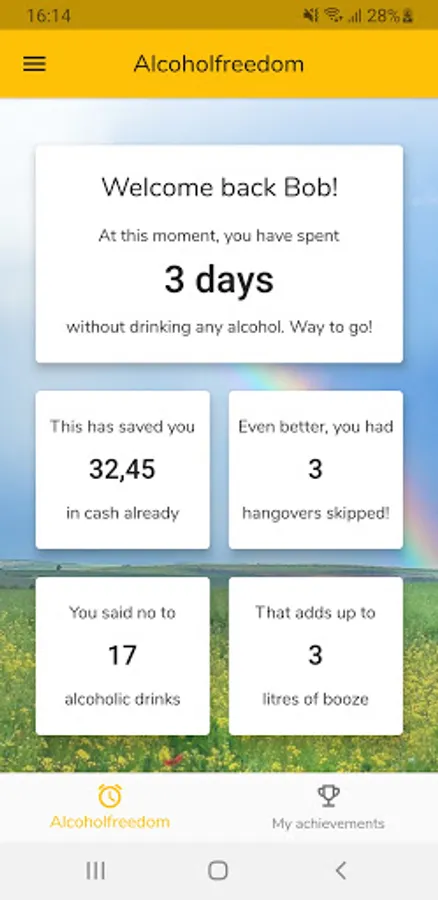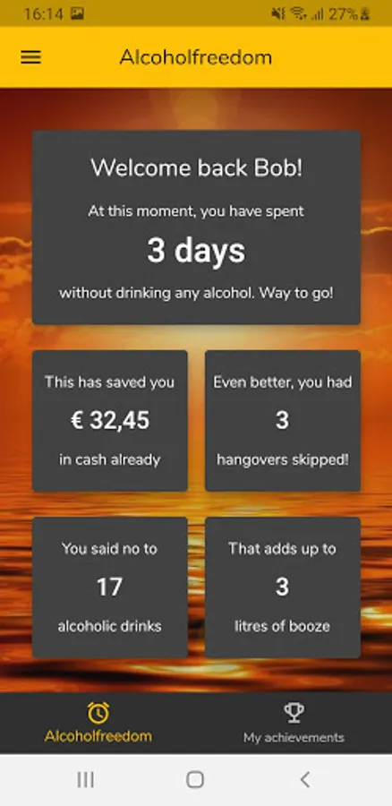 The fun way to quit alcohol! This app is aimed at people who want to make the most out of their lives by finally quitting the drinking of alcohol. With this app, you can track many interesting facts of your journey towards pure alcohol-freedom: