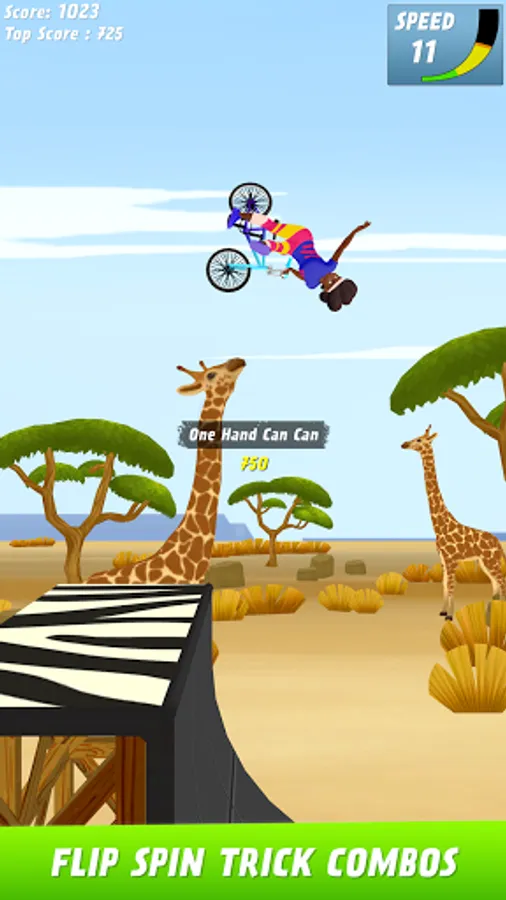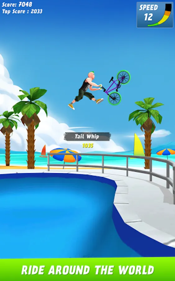 Tailwhips, Bar Spins, Flairs and much more. Combine tricks and get crazy scores. Pump your adrenaline with high speeds and outrageous heights.