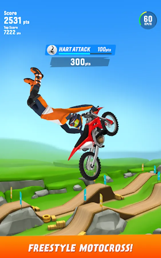 Get big air and perform insane flip tricks. Pull off huge trick combos and become the best Freestyle Motocross Rider on the planet!