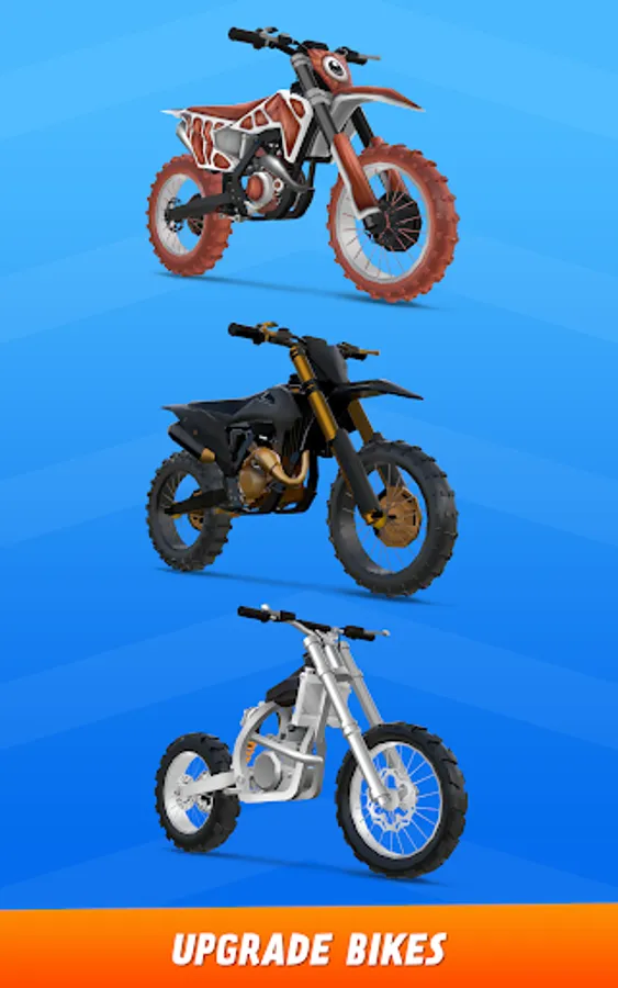 2 stroke, 4 stroke or even Electric! Pick your style from different brands and over 20 unique paint jobs. Collect motorcycles and ride with style.