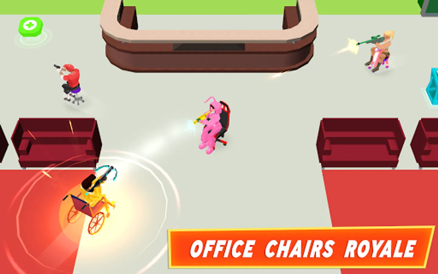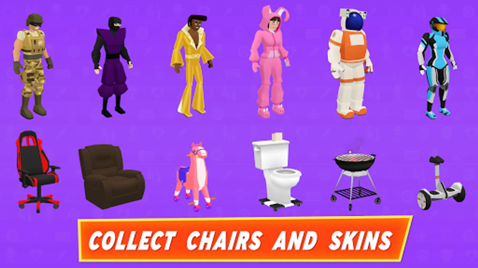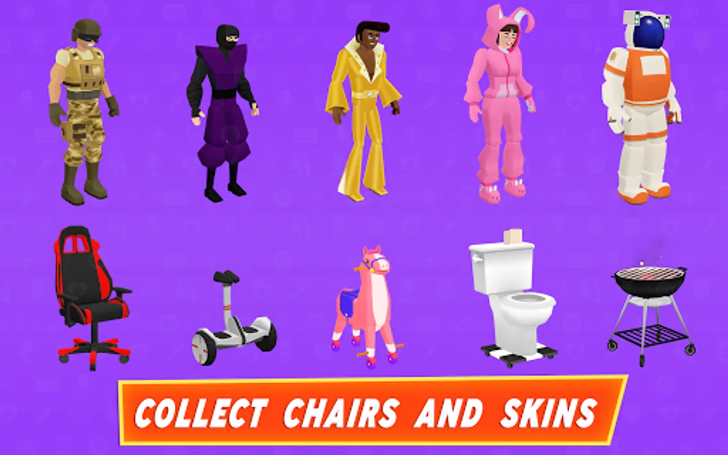People on office chairs and guns equals an epic Battle Royale mode. Test your shooting skills on a chair to be the last one sitting.