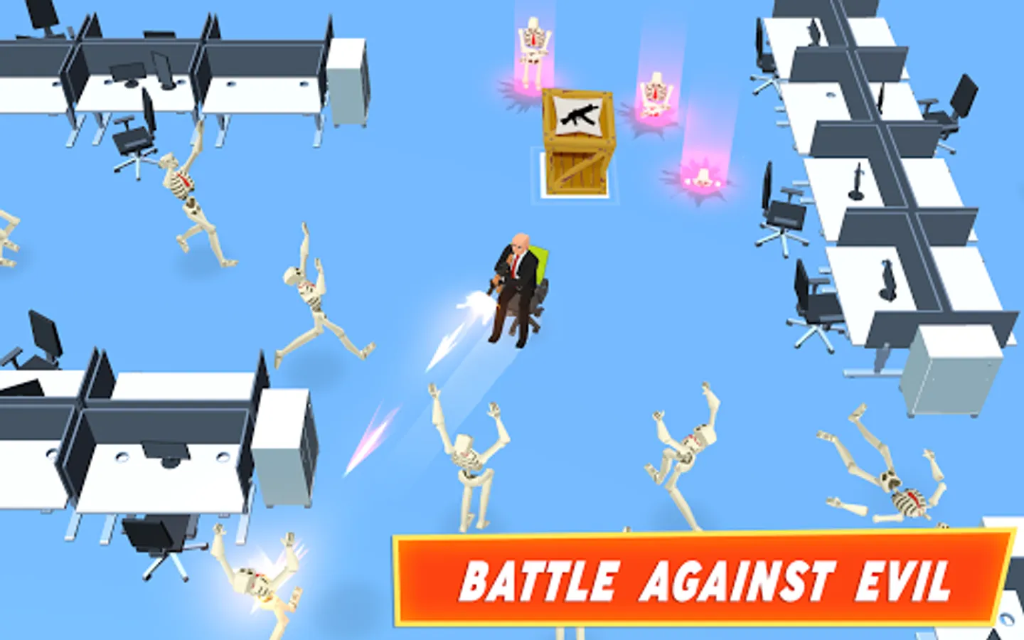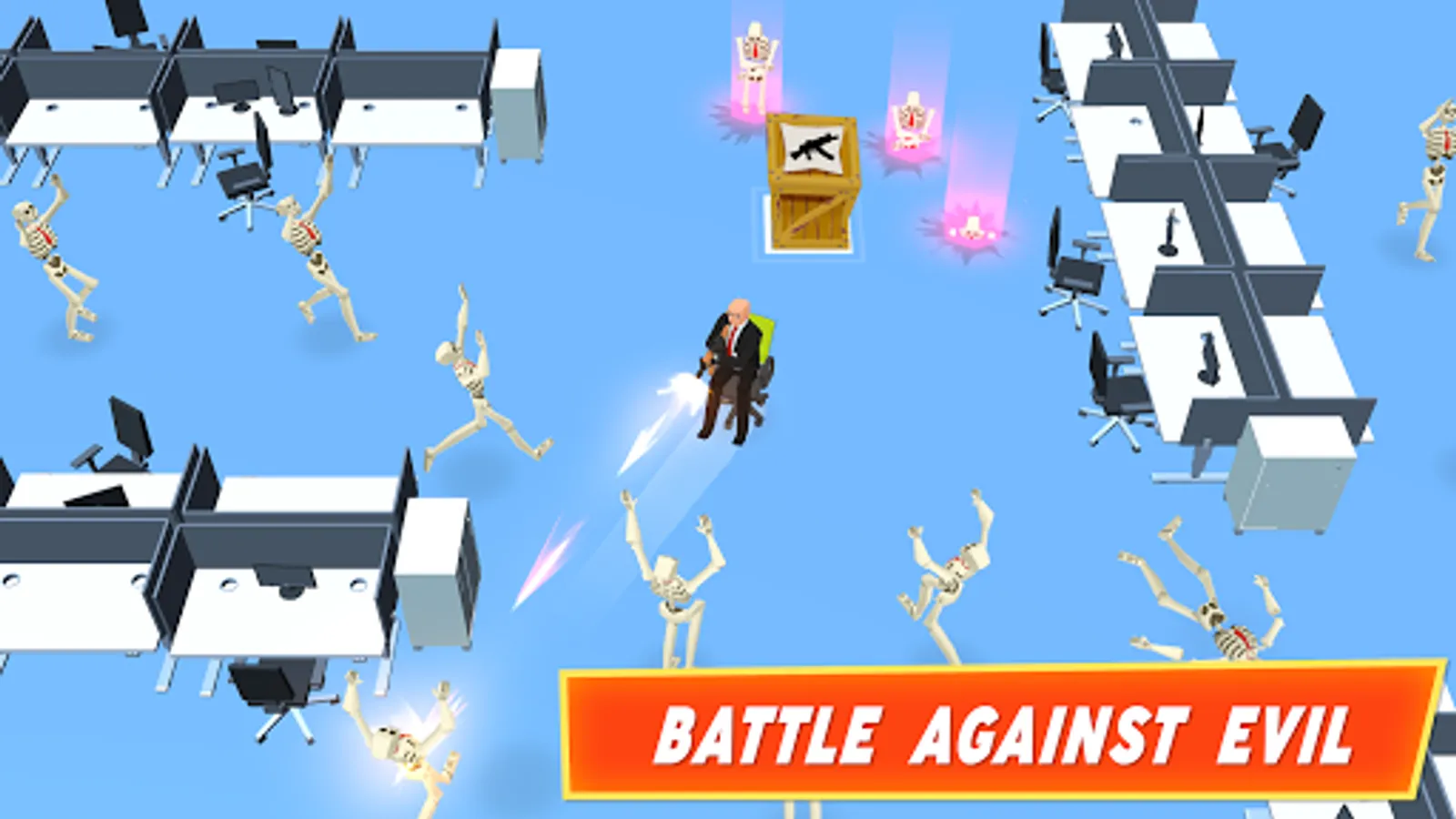 Shoot and roll around on office chairs in this unique top down shooter. Fight evil on an epic campaign or Battle Royale on office chairs to be the last one sitting.