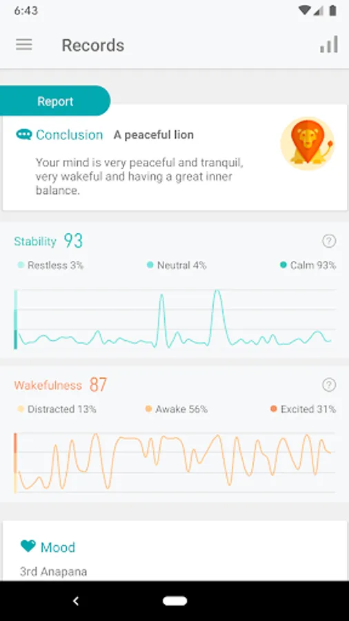 Bhavana works with a EEG device to help monitor your inner calmness and awareness. The app has a built in neurofeedback feature which enables you to monitor your mind in real-time, providing a warning mechanism when the mind becomes agitated or losing focus. Brainwave analysis and statistical charts are provided in the app to reflect your mental conditions over a period of time.
