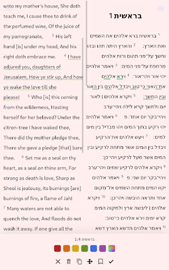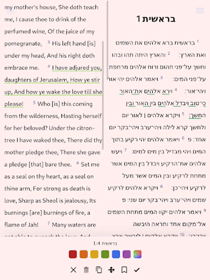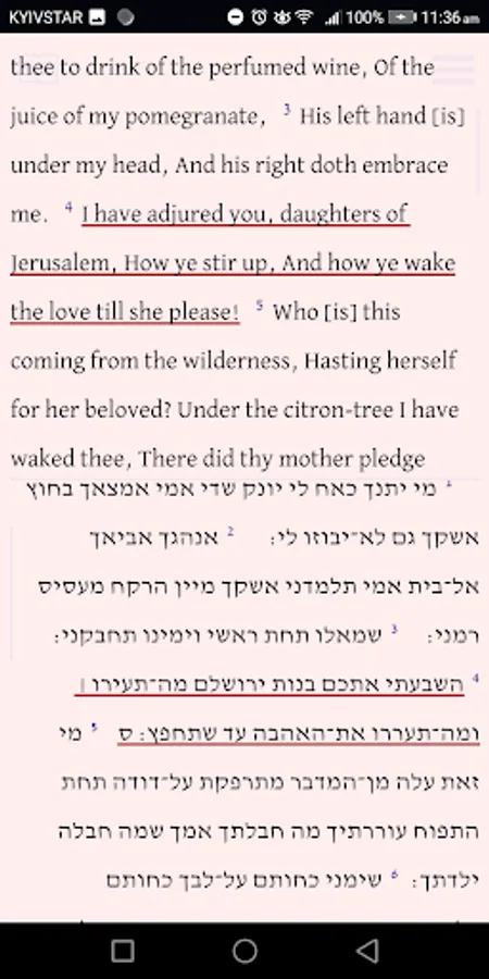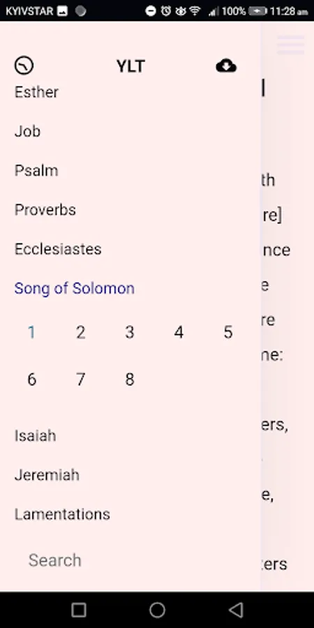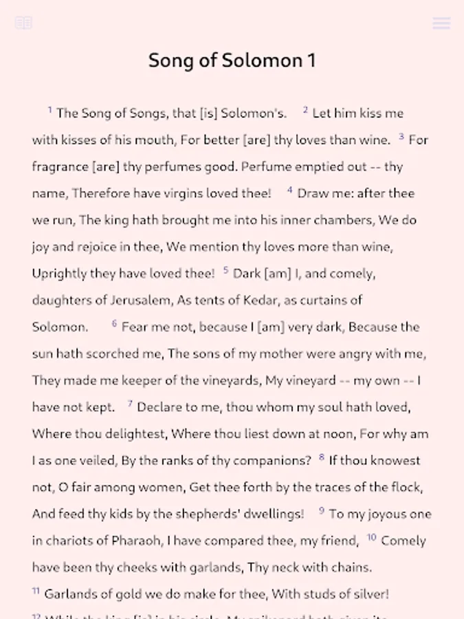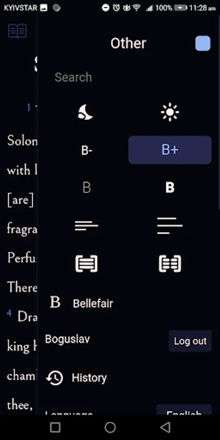 This app is built for reading the Bible on full screen. There is available such features as Bible texts of 56 translations, search, something like bookmarks, reading history, night/light theme, regulation of font size, font-family and some other small nice features. Localization for Українська, Русский, German, Portuguese and Español.