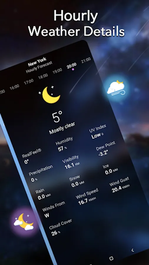 Hourly temperature, Feels like, weather phase, humidity, UV index, visibility, dew point, rain snow ice probability, wind direction speed gust, Cloud Cover. 24-hour Weather Forecast ,View anytime, anywhere . Hourly weather, know as soon as you slip.