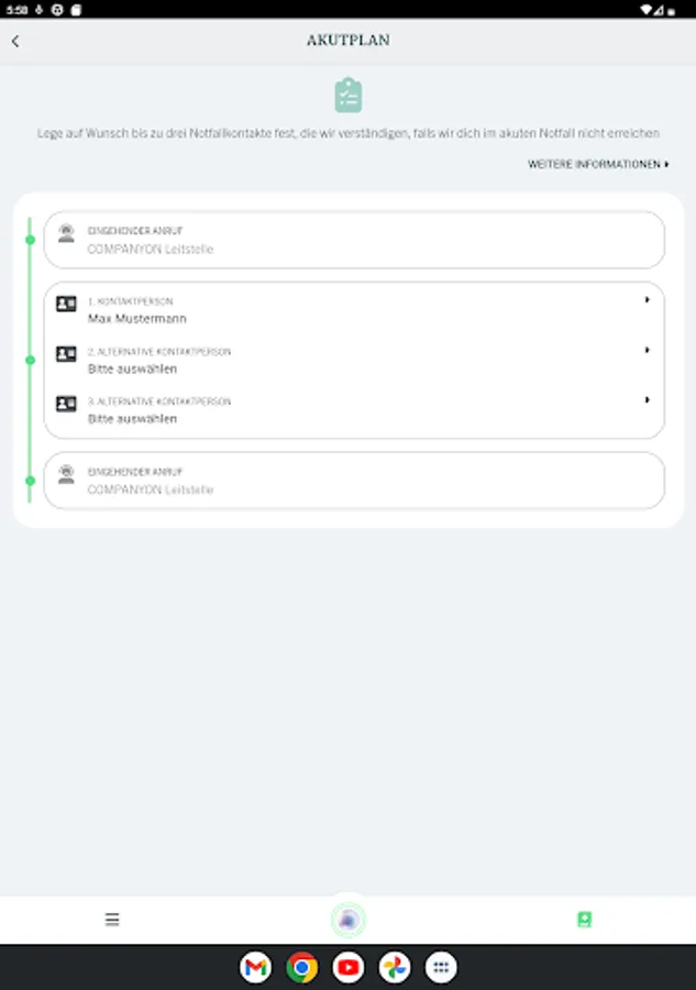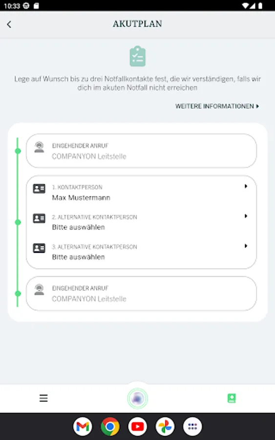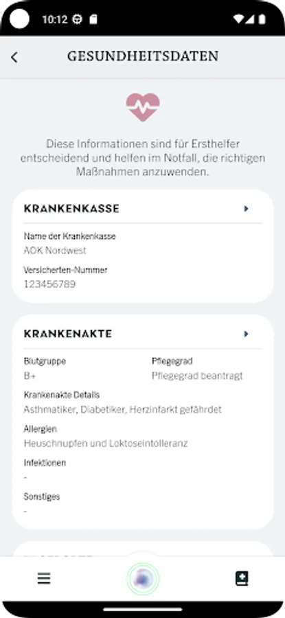 You can store relevant data about your state of health in the COMPANYON emergency app so that you receive immediate, tailored help in an emergency. You can also indicate which emergency contacts are to be informed when you call the emergency services. If a contact person changes, you can immediately and easily adjust your details in the first aid app.