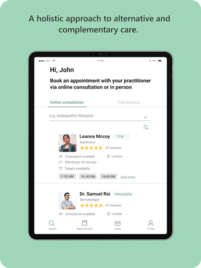 Find your integrative healthcare expert online and consult in person or via video conference.