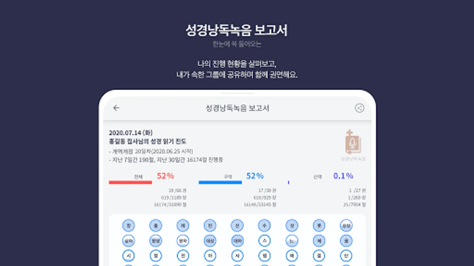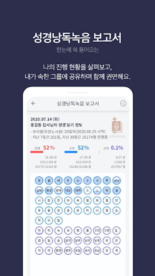 In addition, using this function, we provide a gift-giving function, a Bible reading contest that can be held together in various communities, and a progress report of how much you have read.