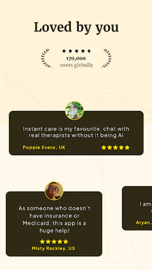 Join our 180,000+ user community and enjoy 24/7 access to one-on-one support, self-care tips, mental health tests, and more.