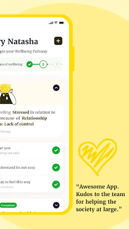 Welcome to heyy, a comprehensive well-being online therapy and self-care app designed to support you throughout your mental health journey. Developed in collaboration with mental health professionals and experts, heyy, is excited to announce our latest feature 'Wellbeing Pathways' . We believe that everyone's mental health journey is unique, and our Wellbeing Pathways use AI to identify your individual strengths and challenges and suggest activities and exercises that can help you achieve your goals.