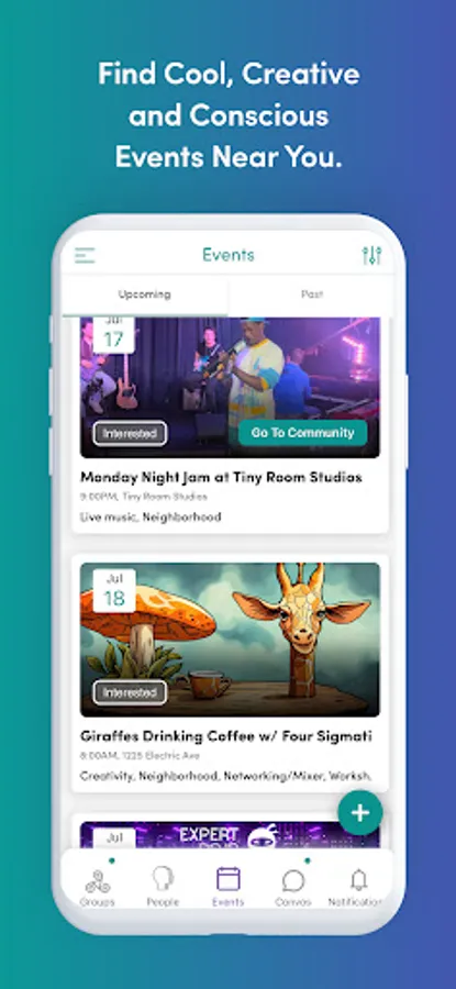 On the Kinlia app, you can find conscious, cool and creative events, meet new people, and deepen connections with people who attend the same events.