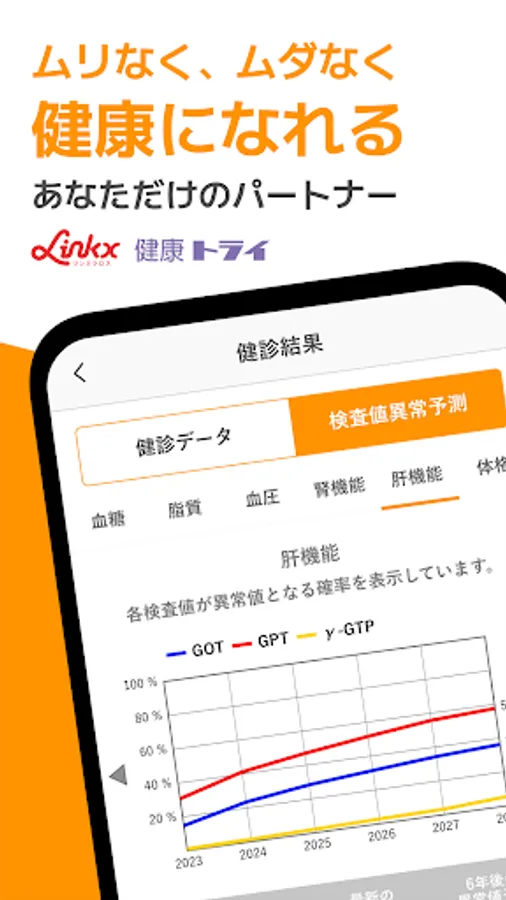 ・Simply snap a photo of the health checkup result sheet with your smartphone to determine your current and six-year health risk!