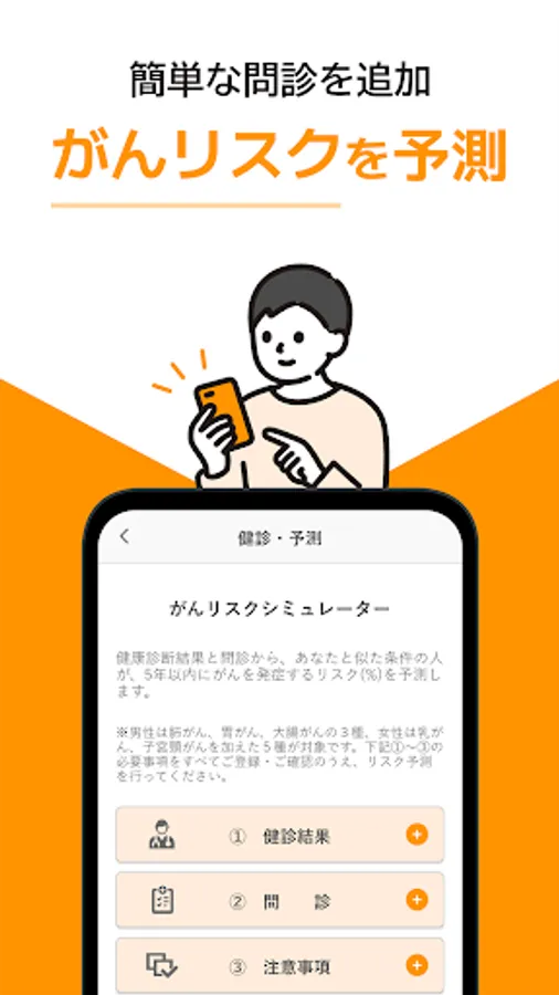 ・You can understand the risk of developing cancer within 5 years by entering the results of the health checkup and a simple interview.