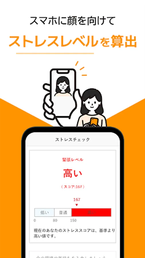 ・Calculate your stress level just by looking at your smartphone for about 60 seconds.