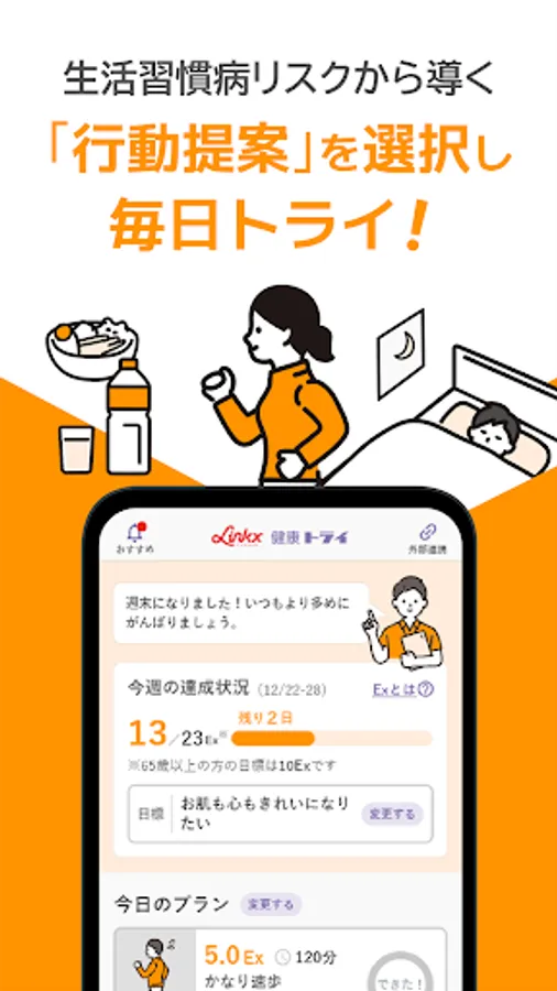 ・Propose health activities (actions) that are perfect for you according to your daily mood and physical condition!