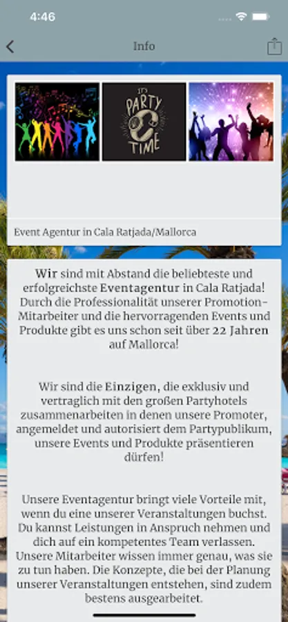 We are by far the most popular and successful event agency in Cala Ratjada! Thanks to the professionalism of our promotion staff and the excellent events and products, we have been on Mallorca for over 22 years! This app gives you even faster access to our offers!