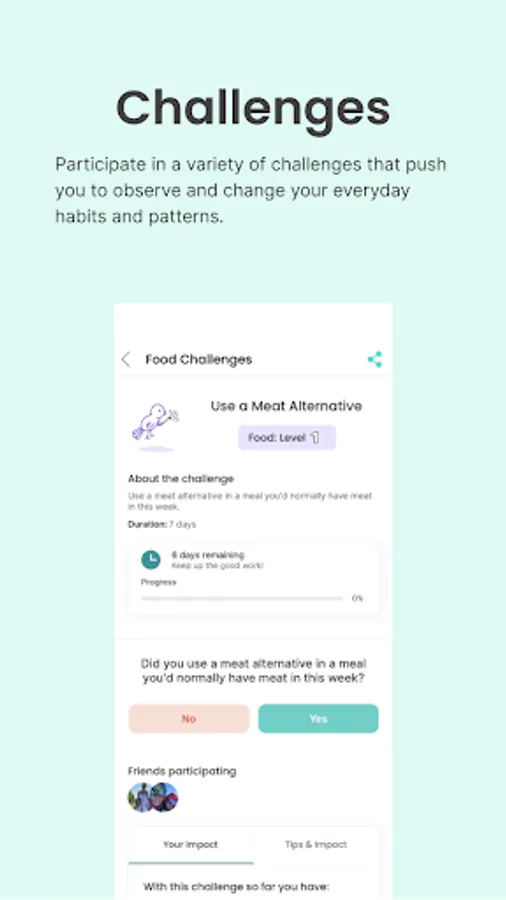 - You can choose how many challenges you complete and how often. Even the smallest action will make a positive change.