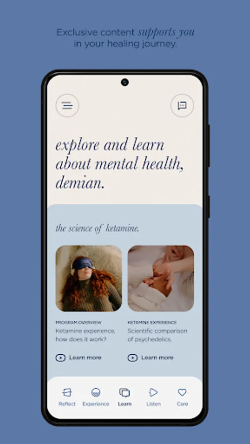 Our team of dedicated clinicians and expert technologists have created a responsive app to accompany you on your wellness transformation. The app helps you set intentions and track your mood as you grow through your program’s ketamine experiences.