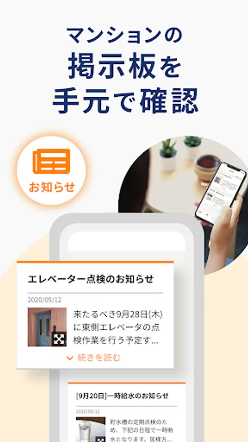 You can see notices from the management company. You can also check the contents of the bulletin board of the property with the app, so you can easily check the dates of inspections and construction.