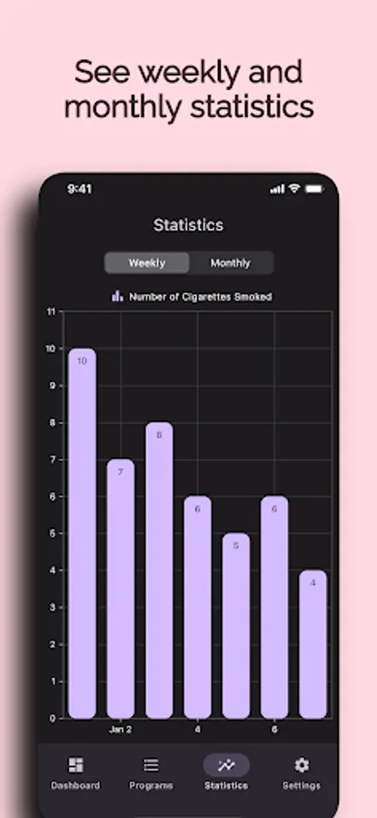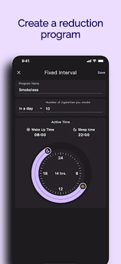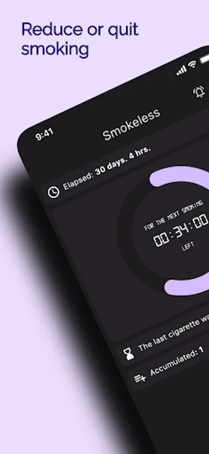 By creating a program in the application, you choose the number of cigarettes you smoke, the number you target and how long you want to reduce. It shows how soon you should smoke the next cigarette by using its special algorithm for reduction. This interval will increase over time. Thus, your smoking frequency will decrease. Your cigarettes accumulate when you are not smoking. When you smoke, you use the accumulated cigarettes by pressing button "I smoked!". You can also see the elapsed time and how much you have decreased.