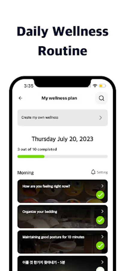 - Wellness activities such as meditation, quotes, rituals, journaling, emotional diary, breathing, and mindfulness