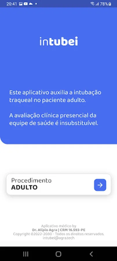 A specific app for the medical field that helps the specialist doctor in the patient's intubation procedure. The application optimizes process steps according to BMI calculations by patient division, choice of drugs and specific dosages per patient!