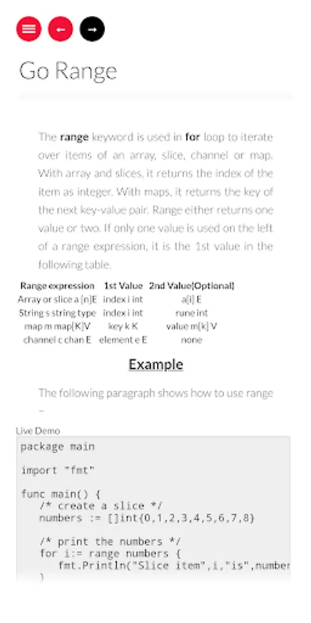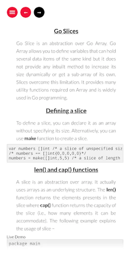 This FREE app will help you to understand Go Programming Language properly and teach you about how to Start Coding using Go. Here we are covering almost all Classes, Functions, Libraries, attributes, references. The sequential tutorial let you know from basic to advance level.