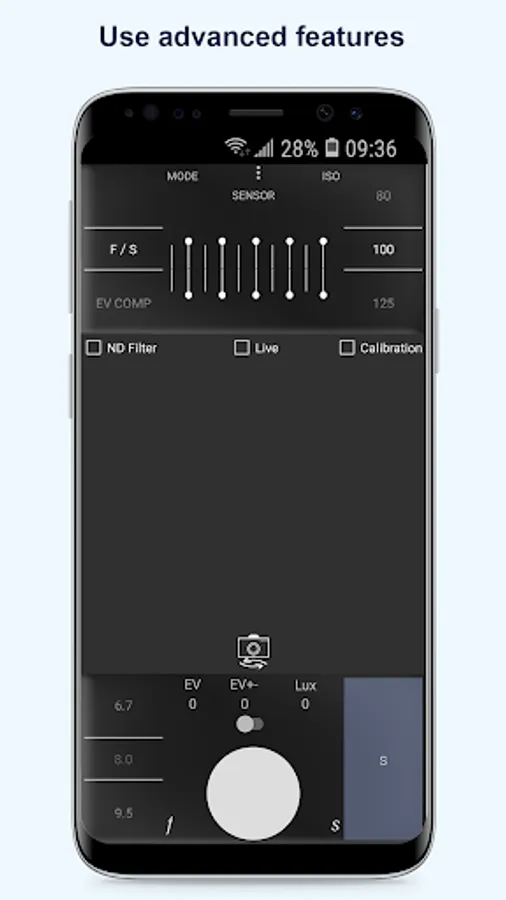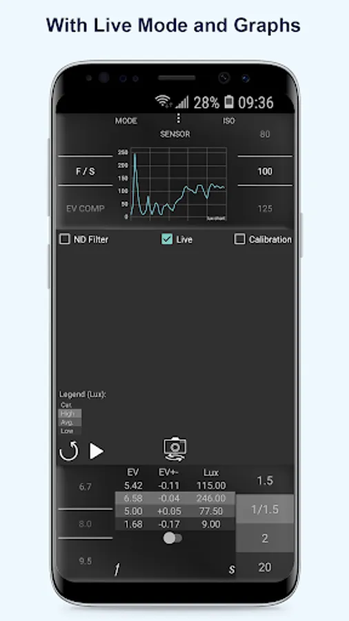 - Sensitivity of the light meter to low light conditions and camera support may vary from individual phone model and manufacturer.
