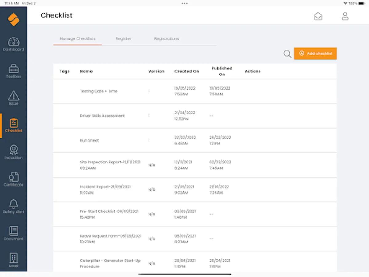 - Checklist: Checklist is a form builder that allows you to create and publish forms in line with your requirements. Any paperwork can be digitised with workflows and alerts to systemise your manual processes, reduce your overheads, and increase efficiency.