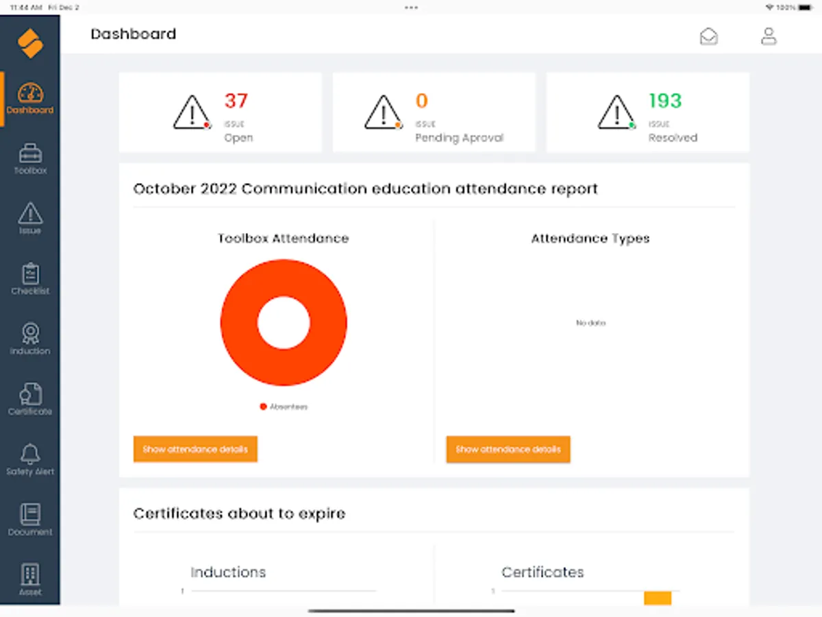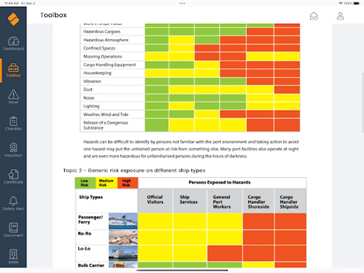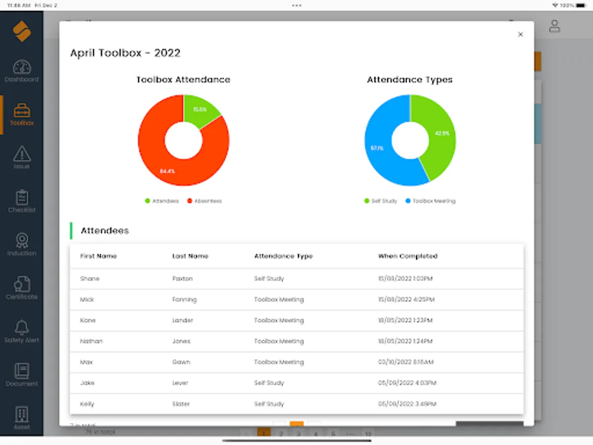 - Toolbox: Toolbox meetings are a key safety tool for organisations. Our toolbox module allows users to create content and publish it to their workforce. Once workers have read the content they are marked as attended. The system allows for real-time tracking of attendance to ensure your team are learning the valuable safety messages.