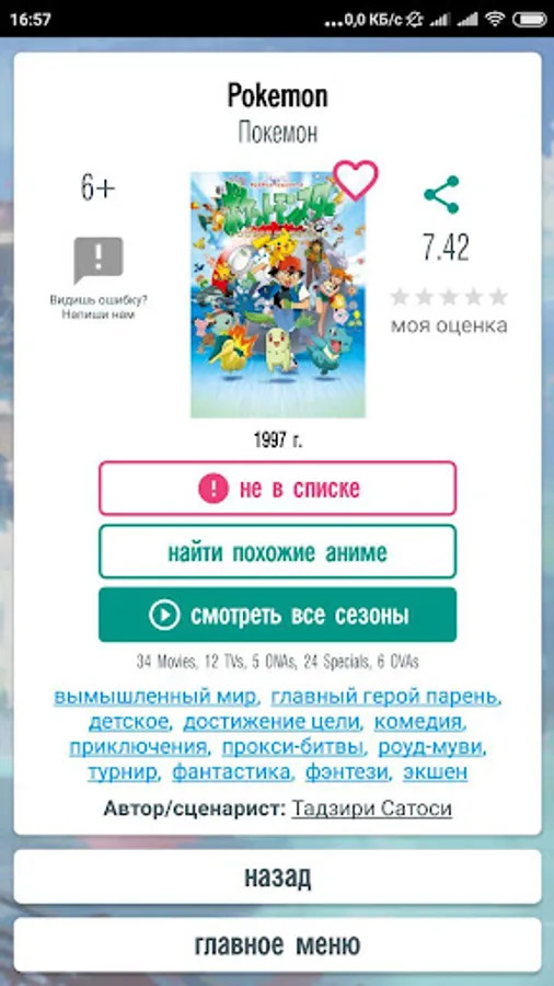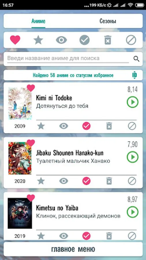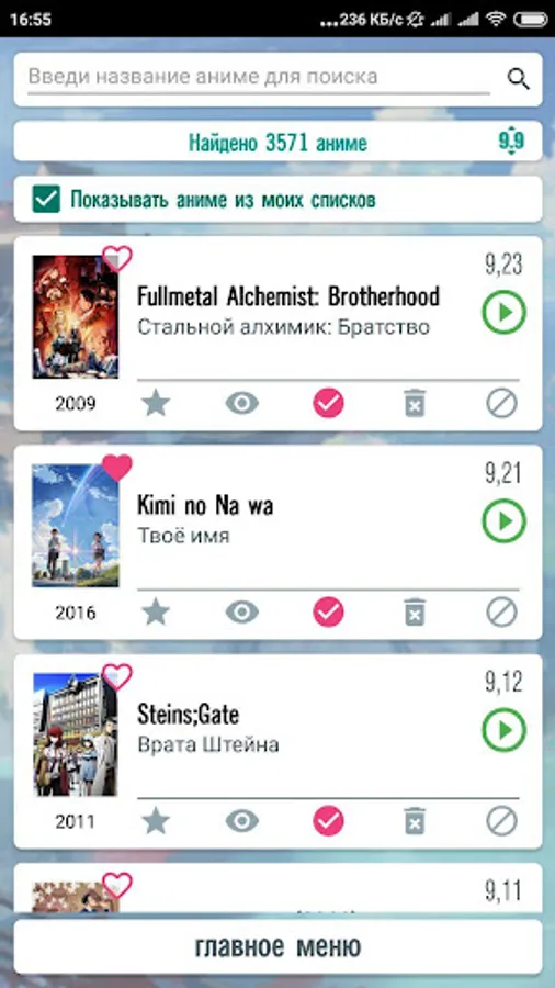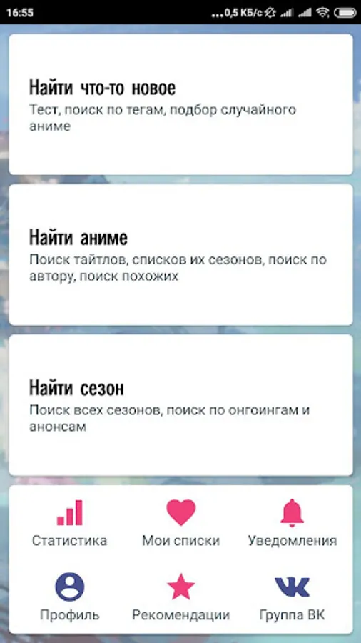 The application allows you to store lists of what you’ve watched or plans for viewing, search for anime by franchise or individual season, as well as search for anime similar to what you liked.