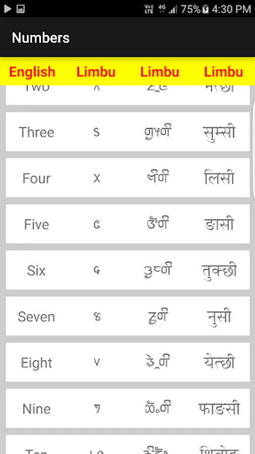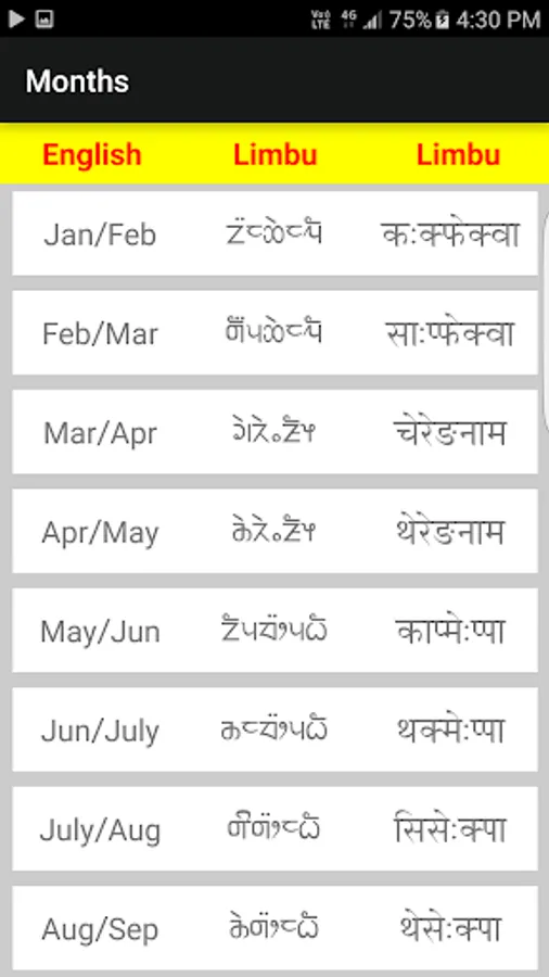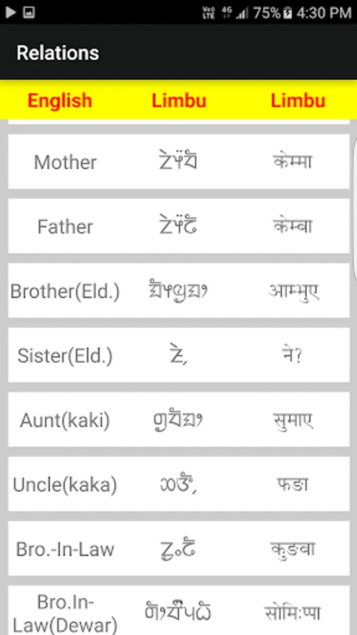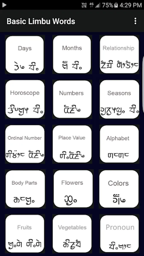 Basic Limbu Words contains a collection of names of words used frequently in day to day life. All words are categorized in a sub-heading of 12 sets.