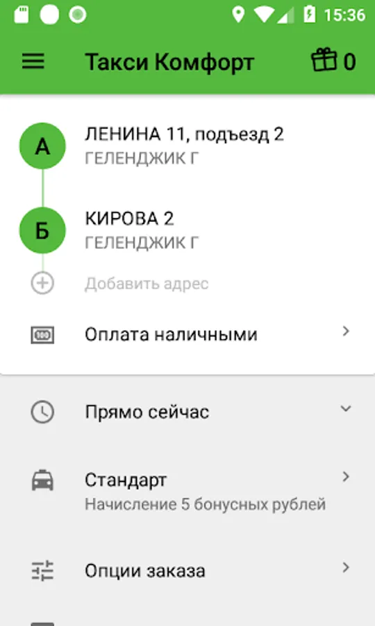 Application for ordering a taxi "Comfort" in the city of Gelendzhik!