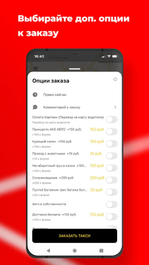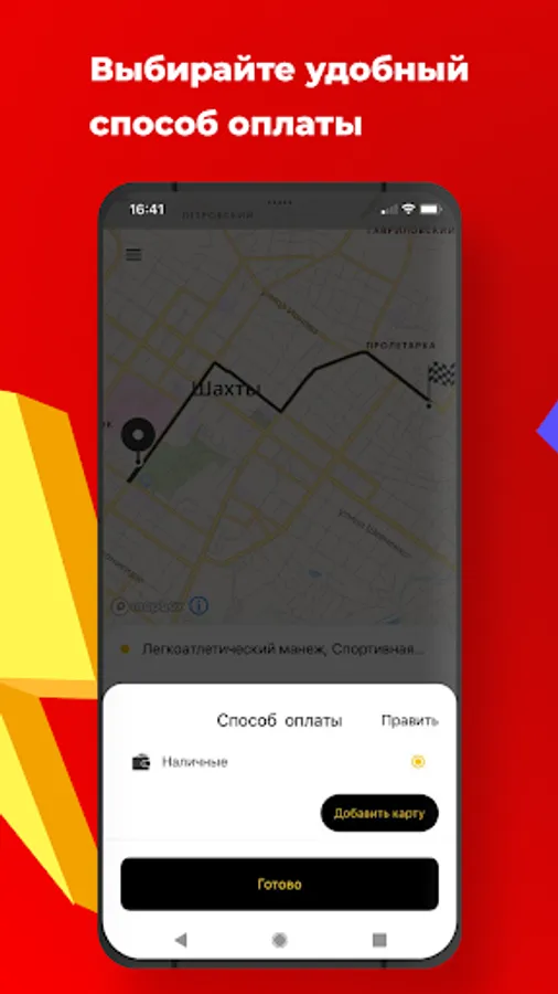 Choose how it will be convenient for you to pay for a taxi in the application: in cash, by card or by transfer to the driver.