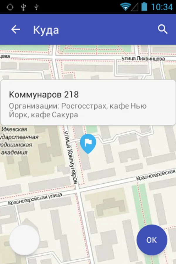 An application for easy ordering a taxi via the Internet in Izhevsk.