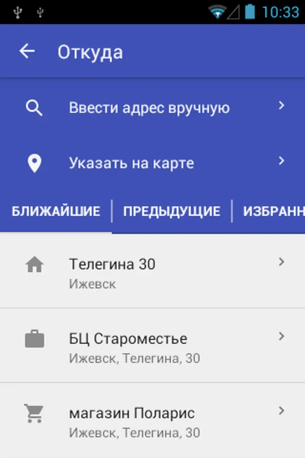 * Select an address on the map, enter it manually or choose from a list of previously used addresses;