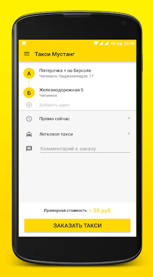 With the application Taxi "Mustang" is easy to book a taxi in Chapaevsk. A few finger movements, and after 5-10 minutes the desired car is already there.