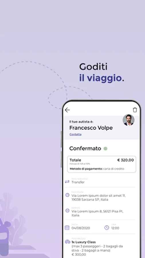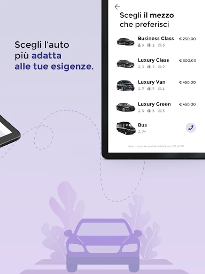 The first Italian application for rental with driver, to go wherever you want, when you want. A flexible premium service, for business trips, events, transfers in the city or elsewhere.