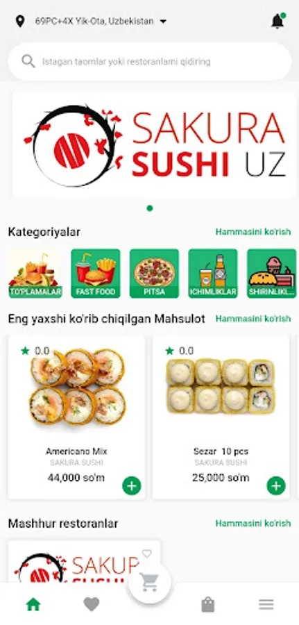 Oilangiz bilan birgalikda buyurtma bering. Buyurtmalarni naqd pulda taomni qo'lingizga olgandan so'ng to'lang.