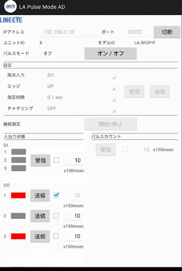 Is a program of Android devices only for the purpose that I have you try (* 1) pulse count function of LANIO the "LAPulseModeAD". The pulse count function, change the number display of the input signal to the pin can be.