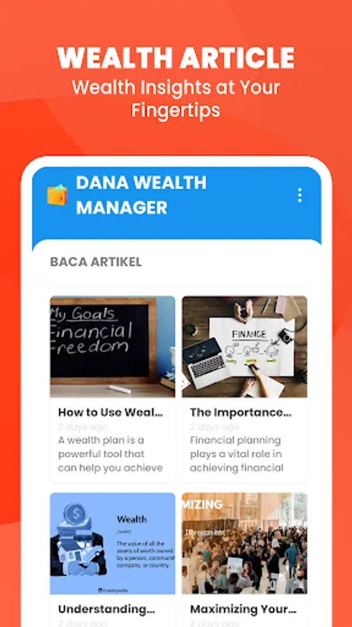 Moreover, Link Dana Kaget - Wealth Plan unveils the secrets to achieving and maintaining long-term wealth. Through carefully curated articles, users can explore proven strategies employed by successful wealth managers and industry experts. Whether it's diversifying investments, maximizing tax efficiency, or identifying lucrative opportunities, this app equips you with the knowledge needed to make informed decisions and seize the possibilities that arise in the financial landscape.