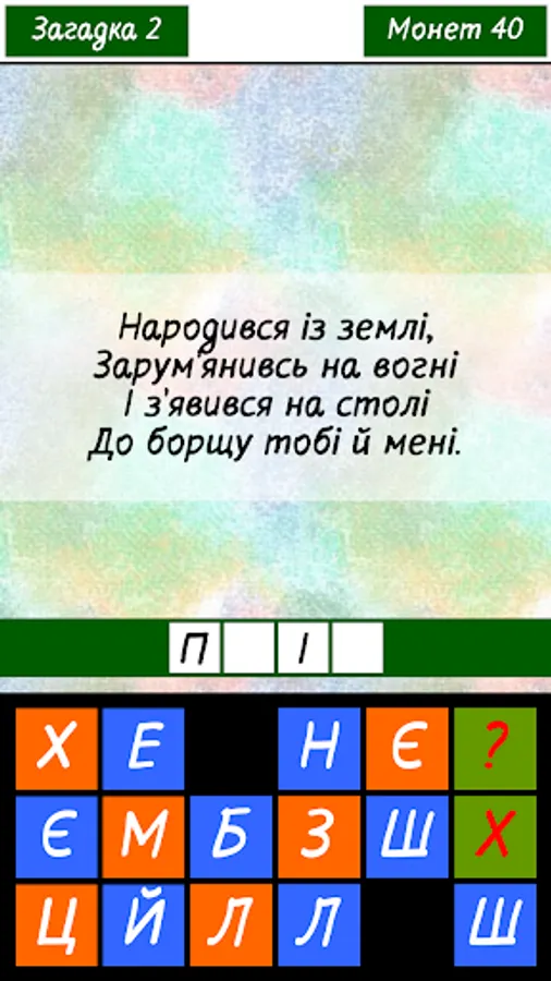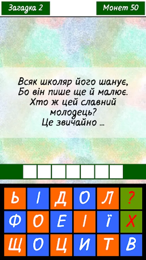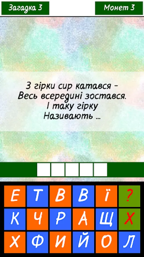 Riddles in Ukrainian - a game where you have to guess a riddle and compose the word.