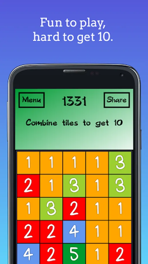 Try Get 10 is a fun number puzzle game that is easy to play but difficult to master. Find the same numbers, tap and grow. The numbers have to be connected. Challenge yourself to see if you can get 10!
